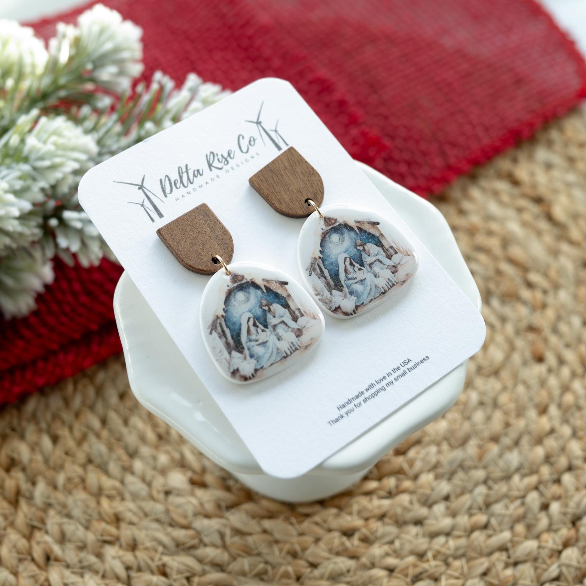 —MATERIALS: Sculpey Polymer Clay, Gold-filled Jump Rings, Stainless Steel Posts, Transfer Paper, Resion on top to enhance shine