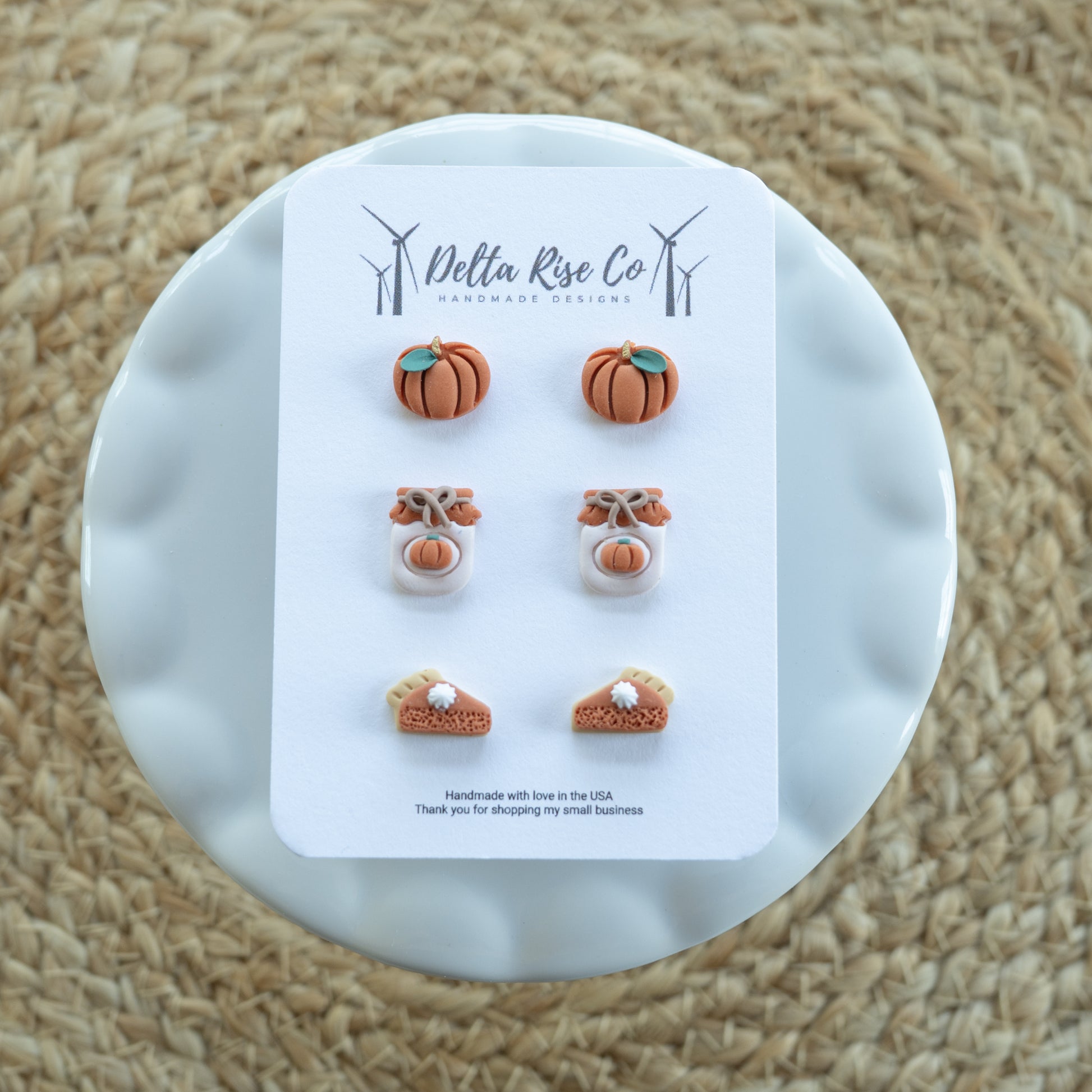 --MATERIALS: Sculpey Polymer Clay, Stainless Steel Posts, Loctite Glue, Liquid Clay (covers post on back)